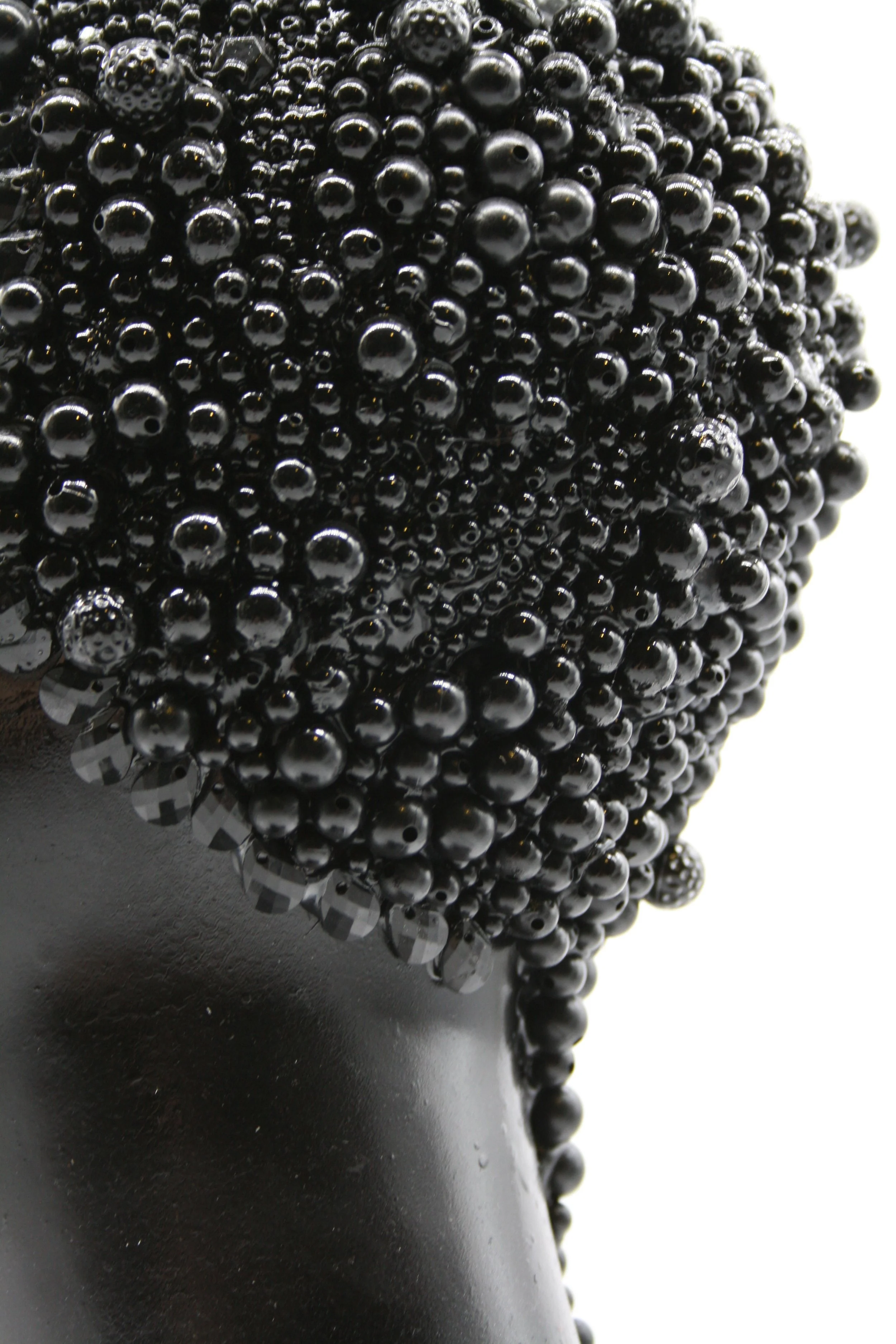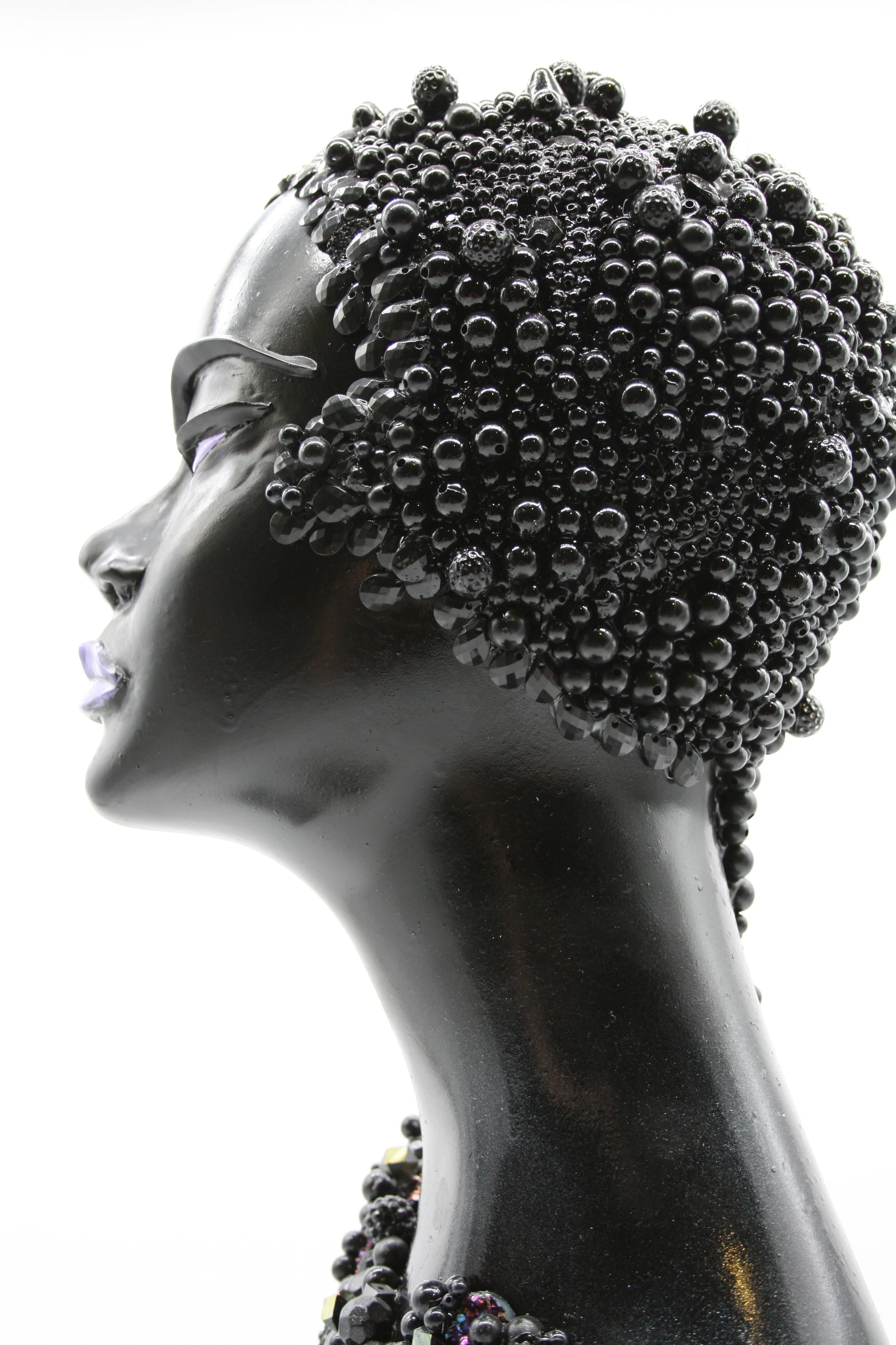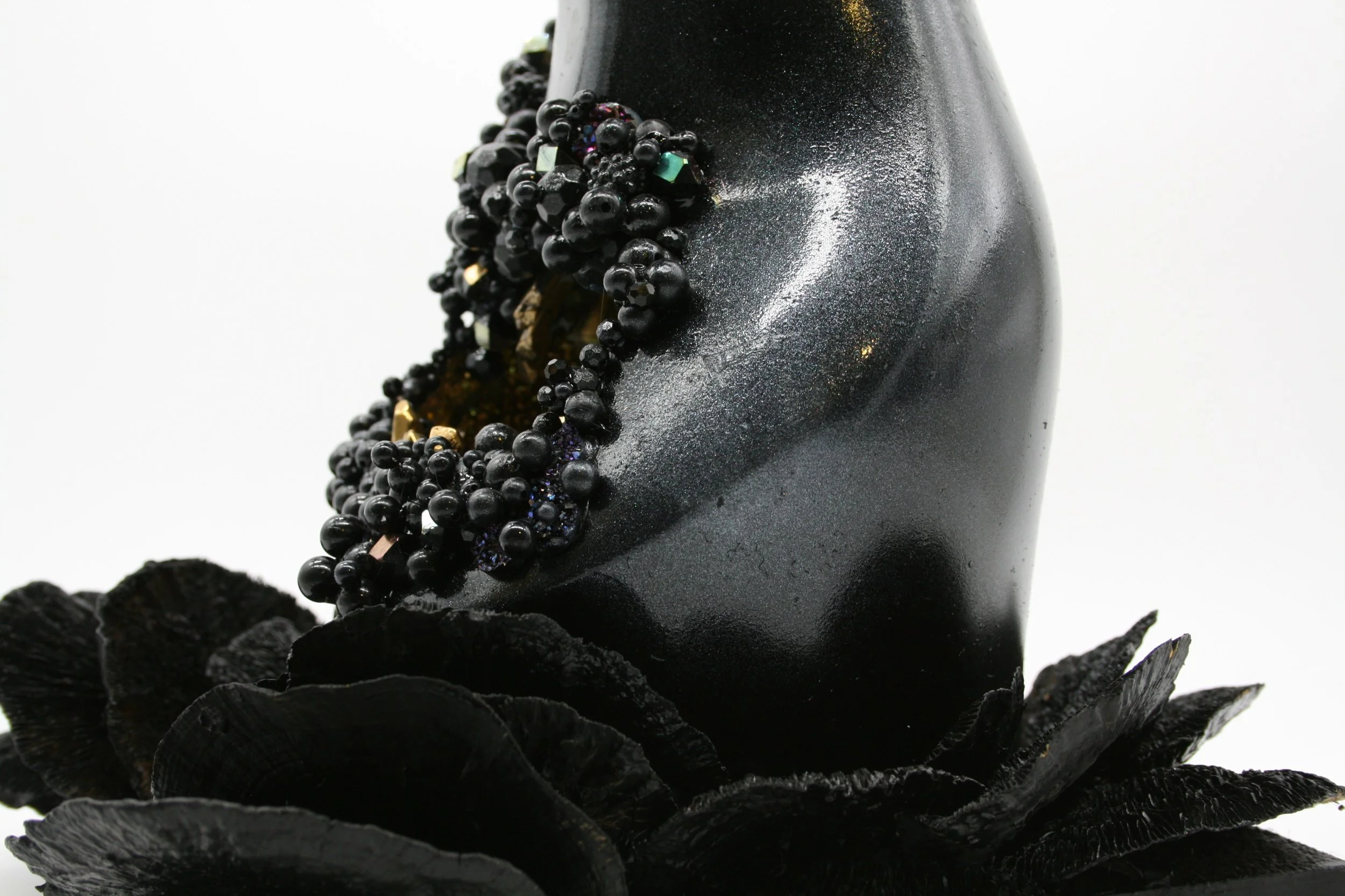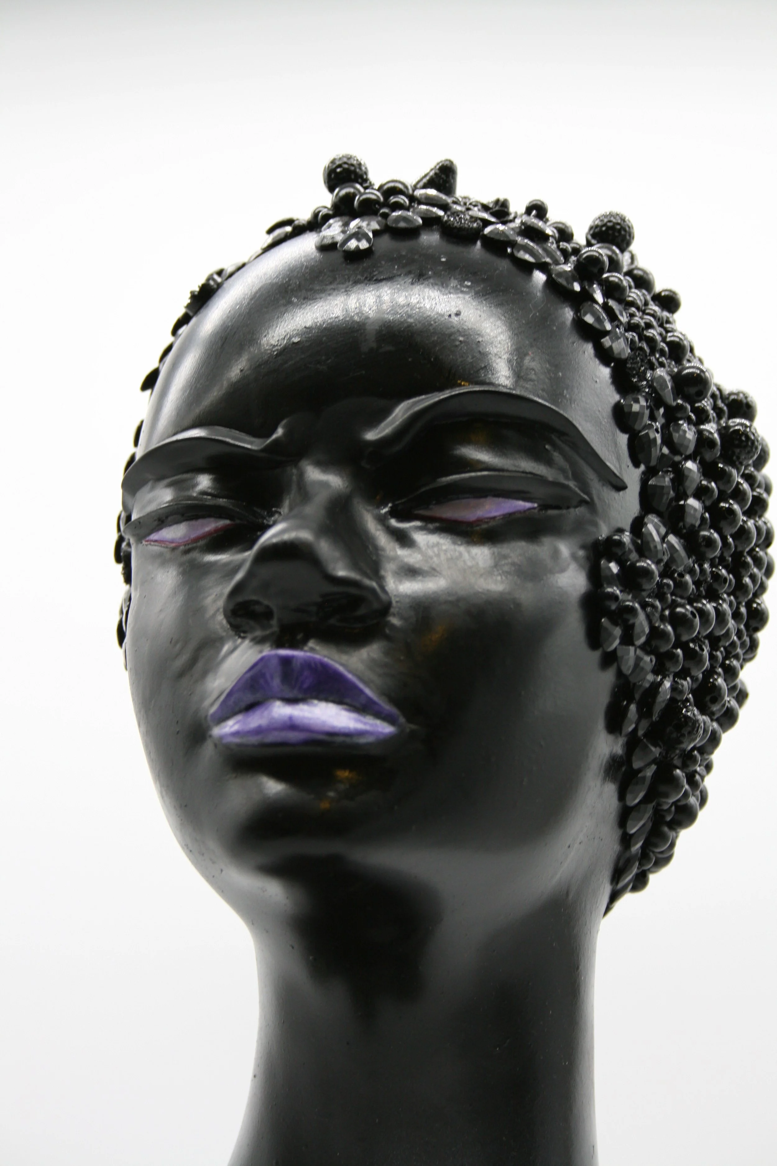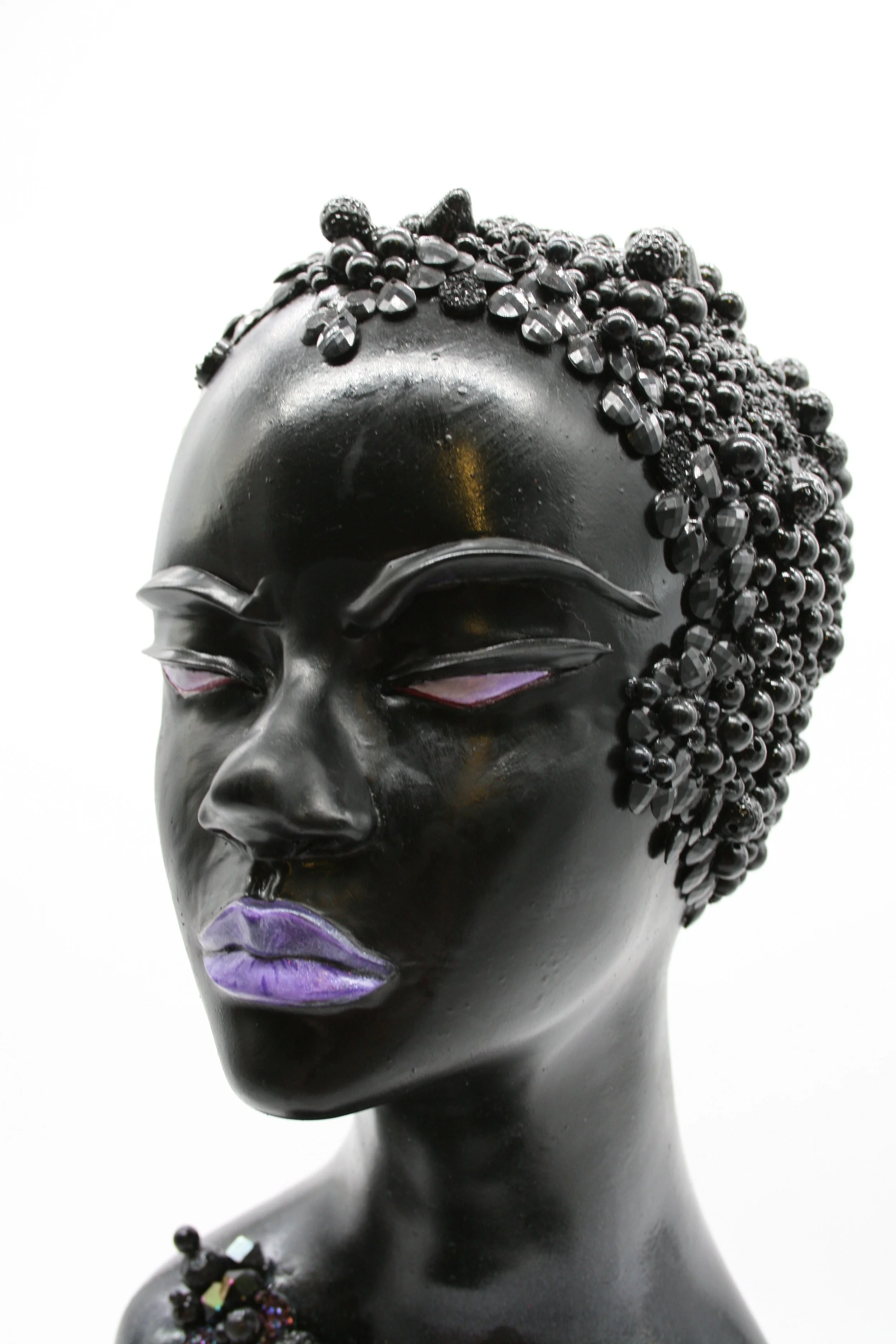Dried mushrooms, beads, glass, gemstones, clay, spike, studs, plastic, glitter, paint.