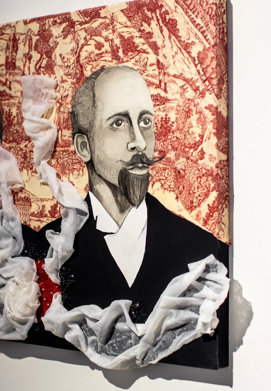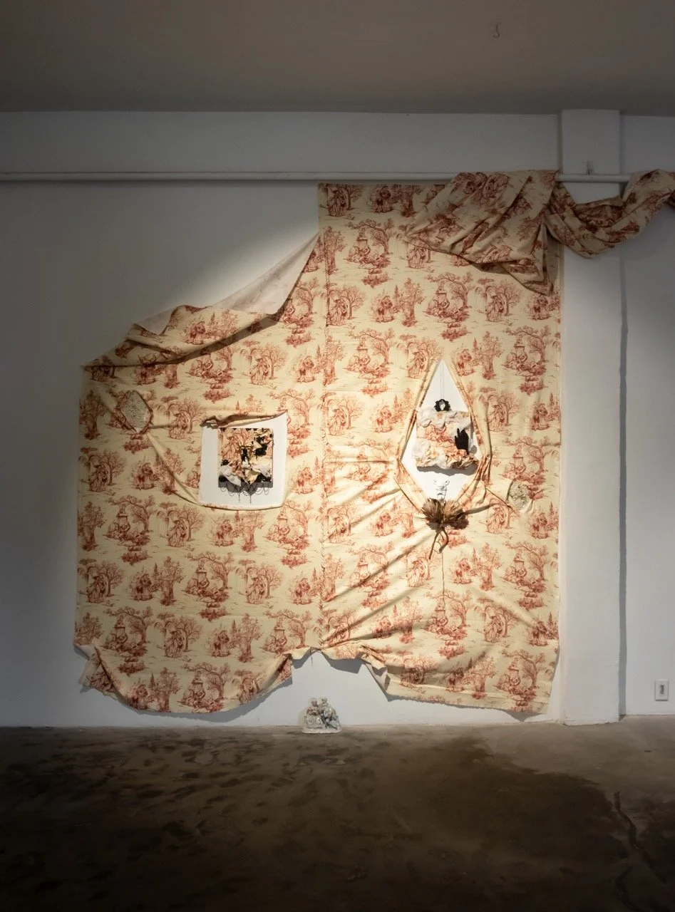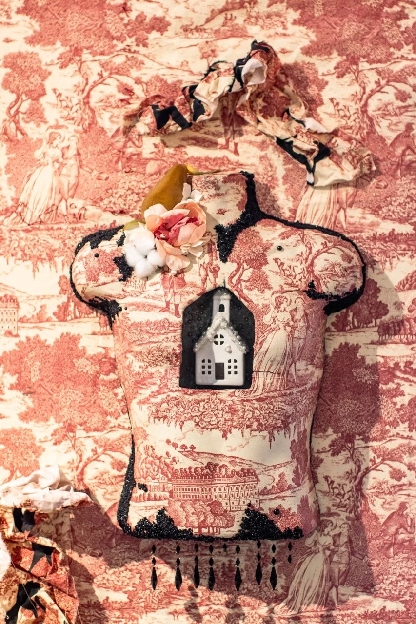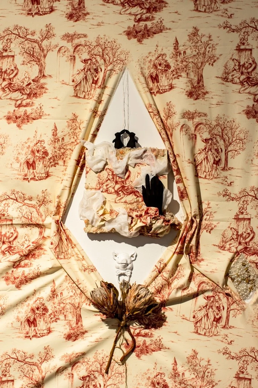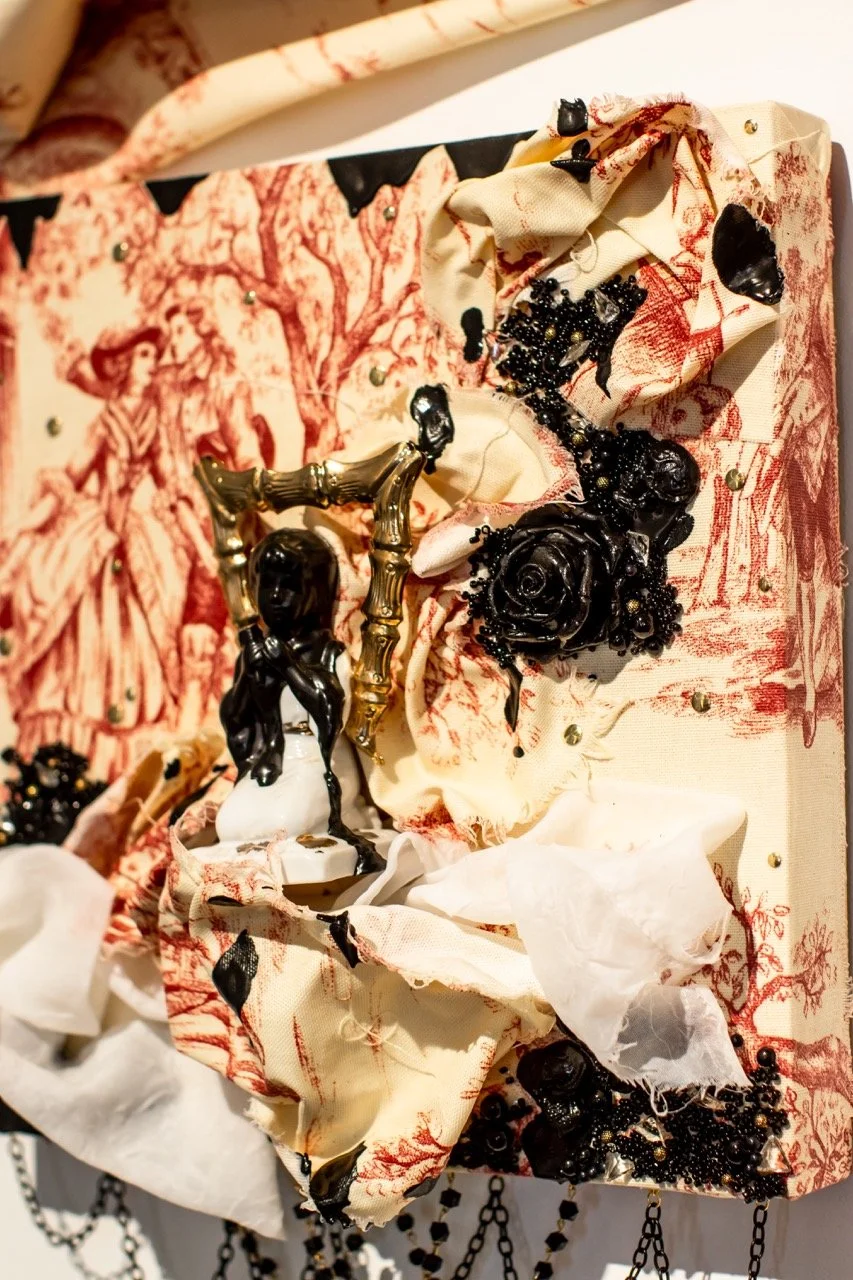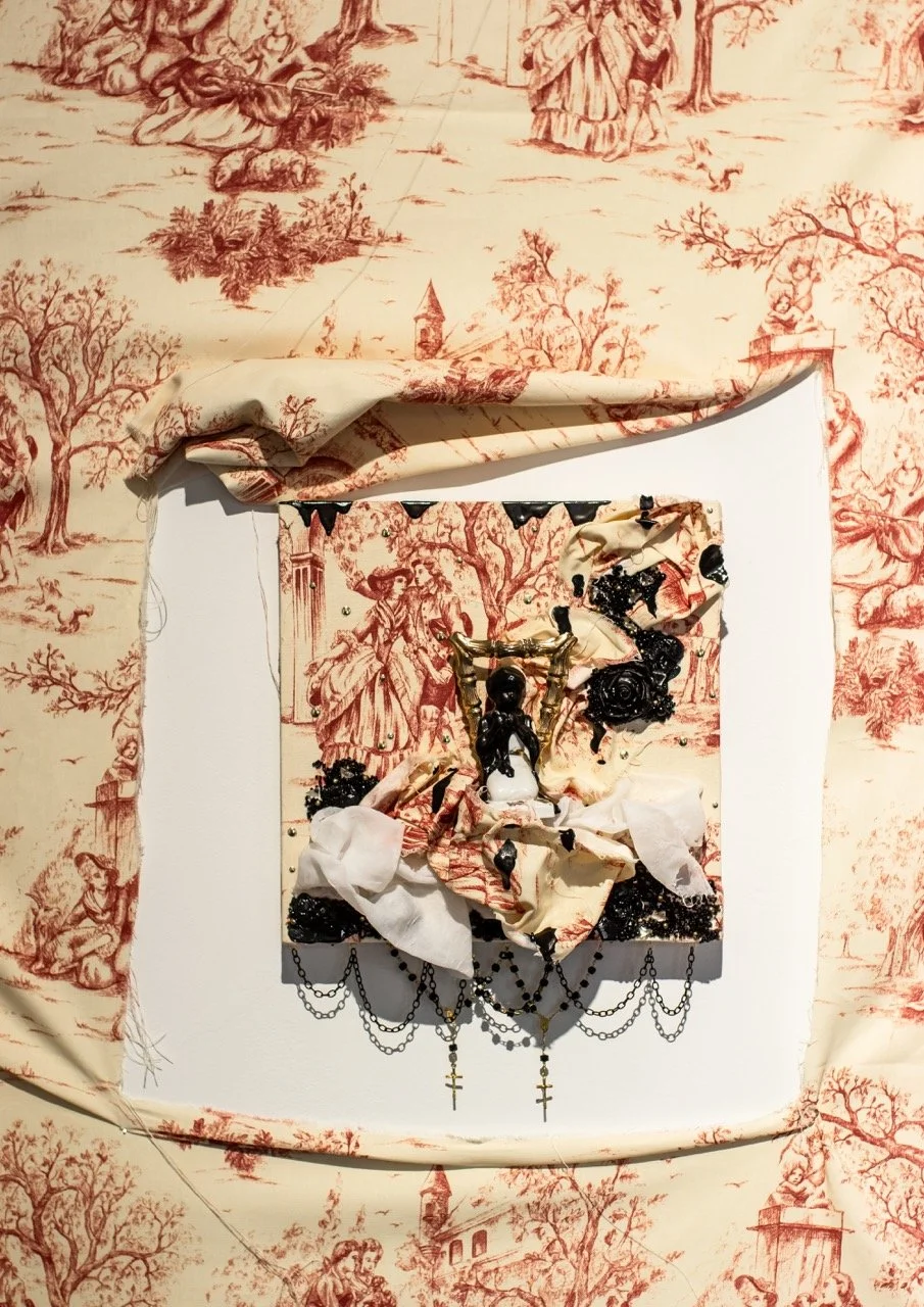 You’ve Made This House Your Home is an ever-evolving installation comprised of ornamental mixed-media works that unearth the silenced, concealed, and erased narratives of the Black diaspora, my personal experiences as a biracial Black woman, and the foundational systems of oppression that continue to influence contemporary culture. This project delves into themes surrounding respectability politics, their interconnectedness with White Supremacy and colonization, and the dual role they play in both advancing and dismantling communities. Inspired by W.E.B. Du Bois' essay "The Talented Tenth" and rooted in hidden American histories such as The Pearl Incident, the project draws from scholarly insights provided by figures like E. Franklin Frazier, Sabrina Strings, and the literary influence of Margot Jefferson.