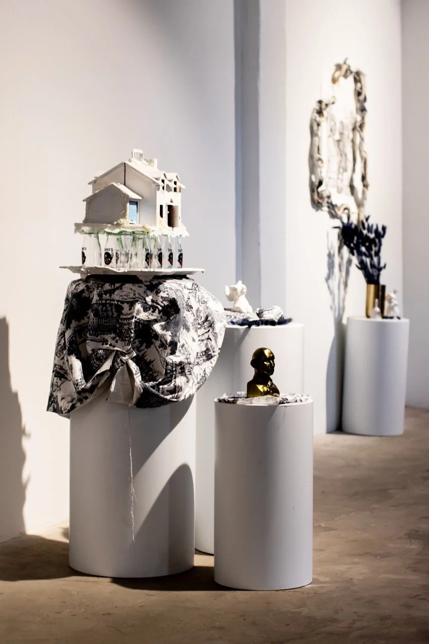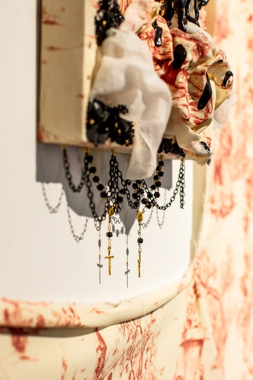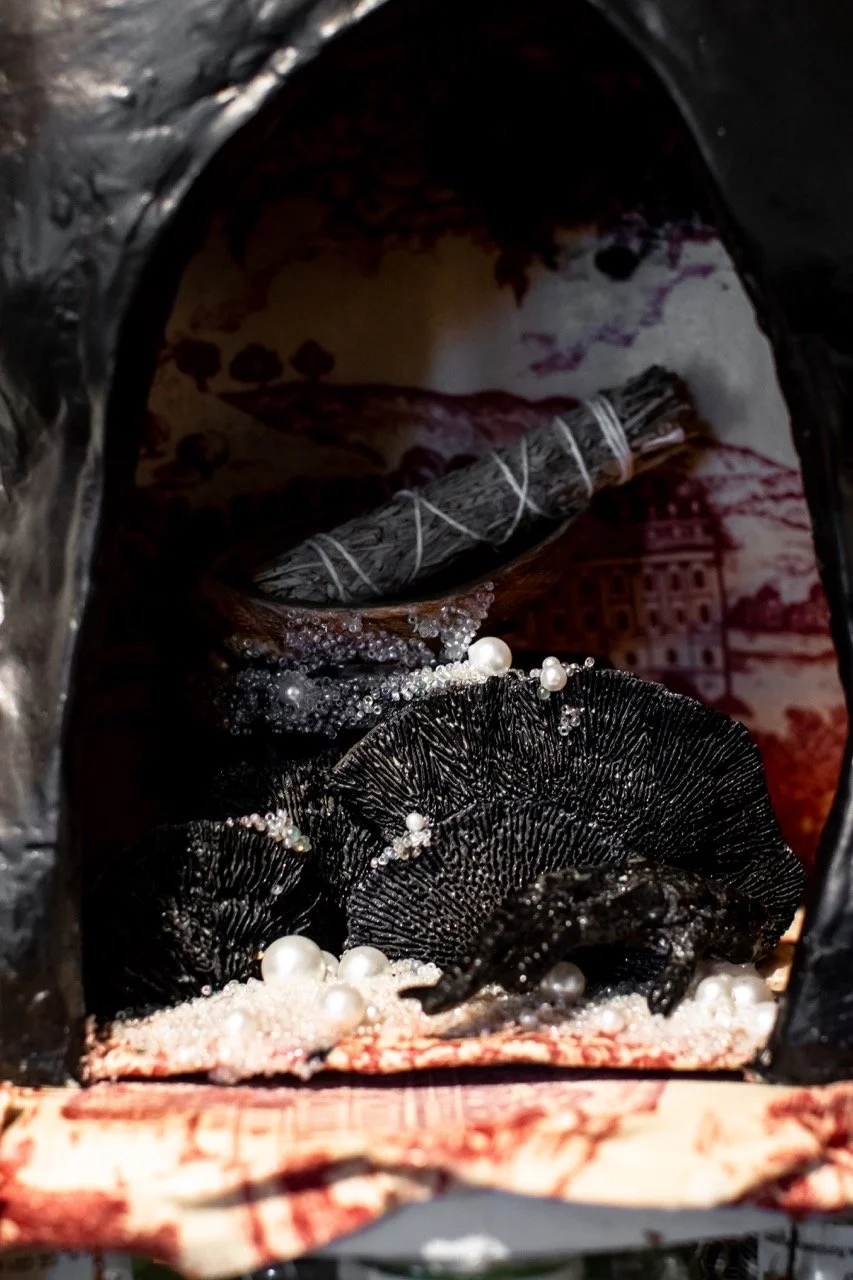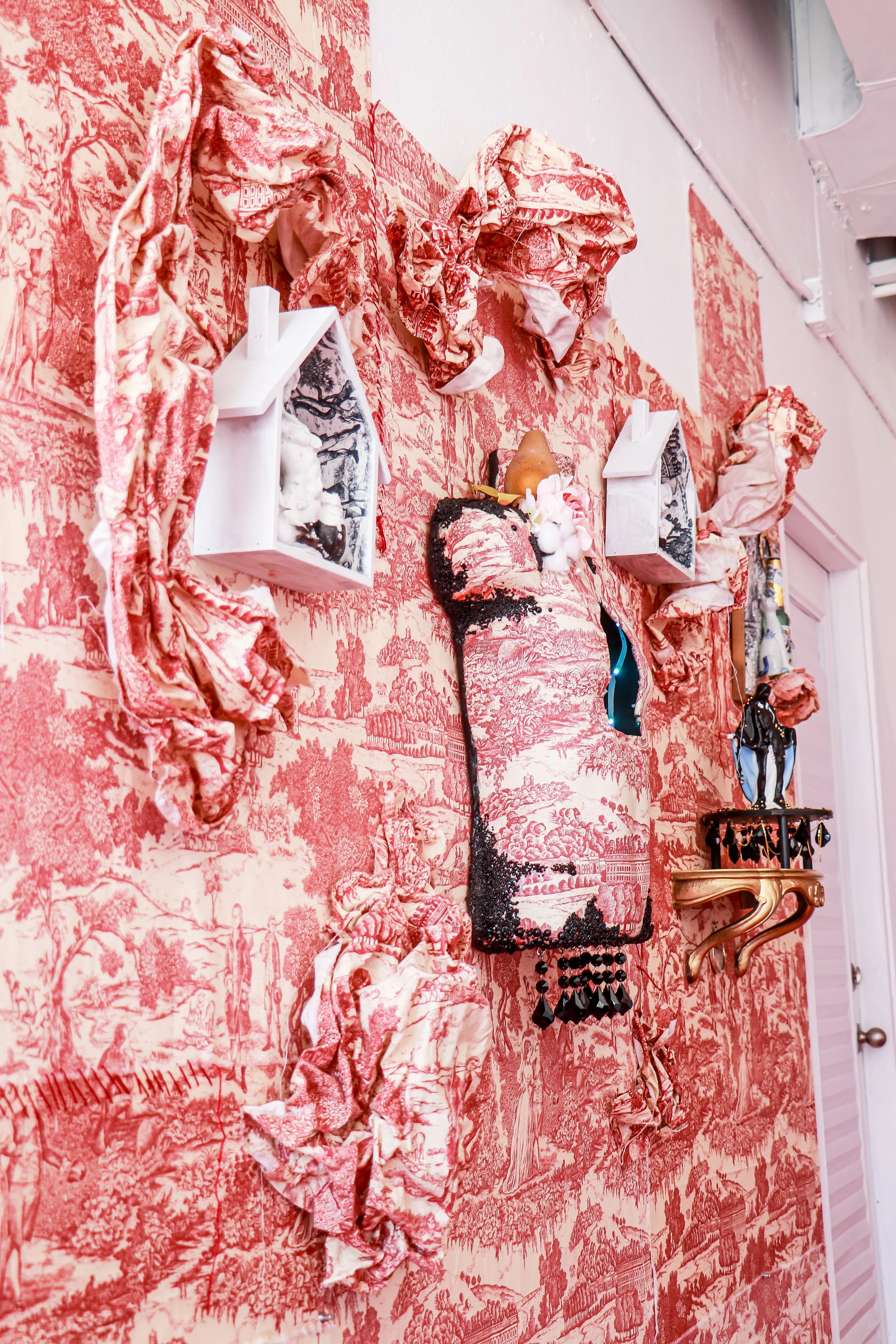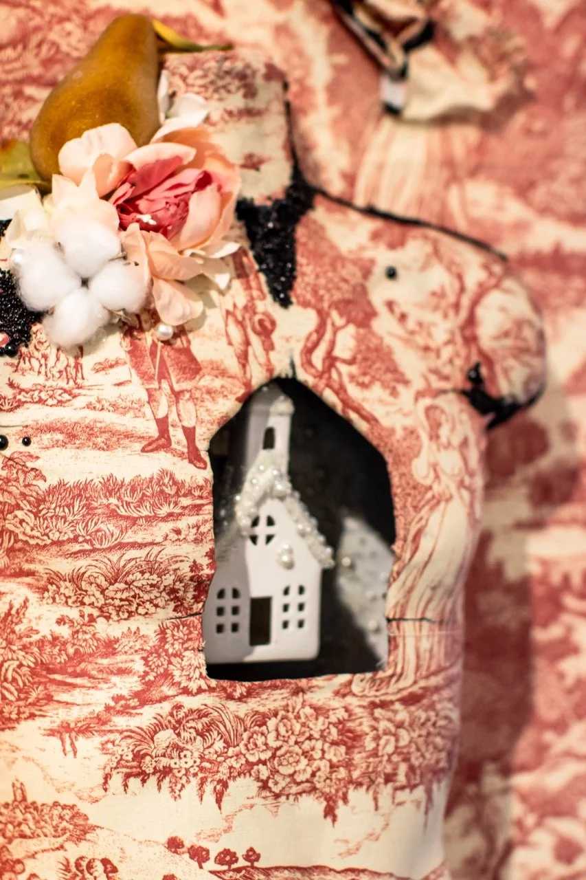 You’ve Made This House Your Home is an ever-evolving installation comprised of ornamental mixed-media works that unearth the silenced, concealed, and erased narratives of the Black diaspora, my personal experiences as a biracial Black woman, and the foundational systems of oppression that continue to influence contemporary culture. This project delves into themes surrounding respectability politics, their interconnectedness with White Supremacy and colonization, and the dual role they play in both advancing and dismantling communities. Inspired by W.E.B. Du Bois' essay "The Talented Tenth" and rooted in hidden American histories such as The Pearl Incident, the project draws from scholarly insights provided by figures like E. Franklin Frazier, Sabrina Strings, and the literary influence of Margot Jefferson.
