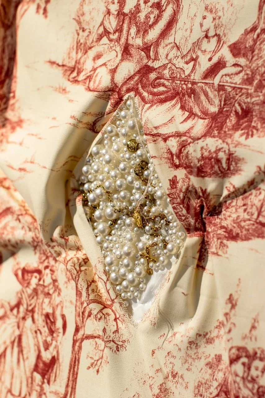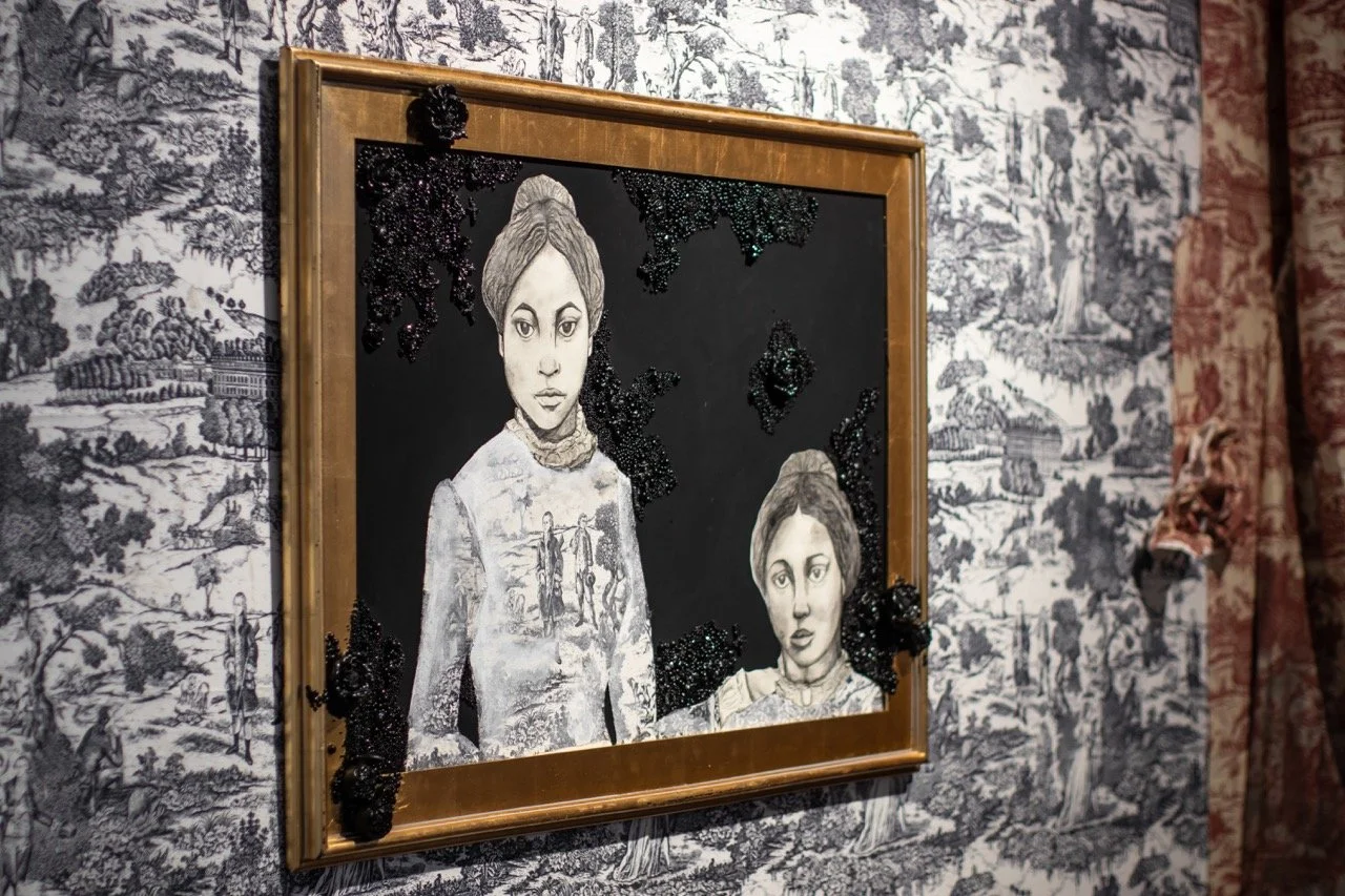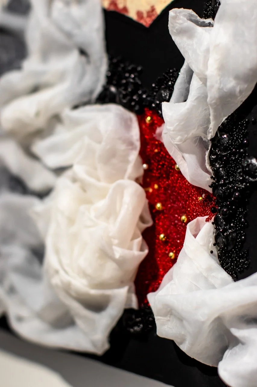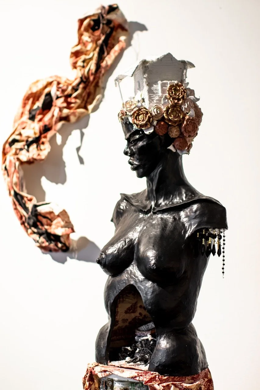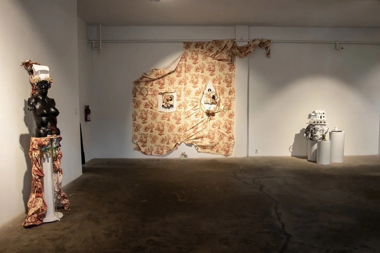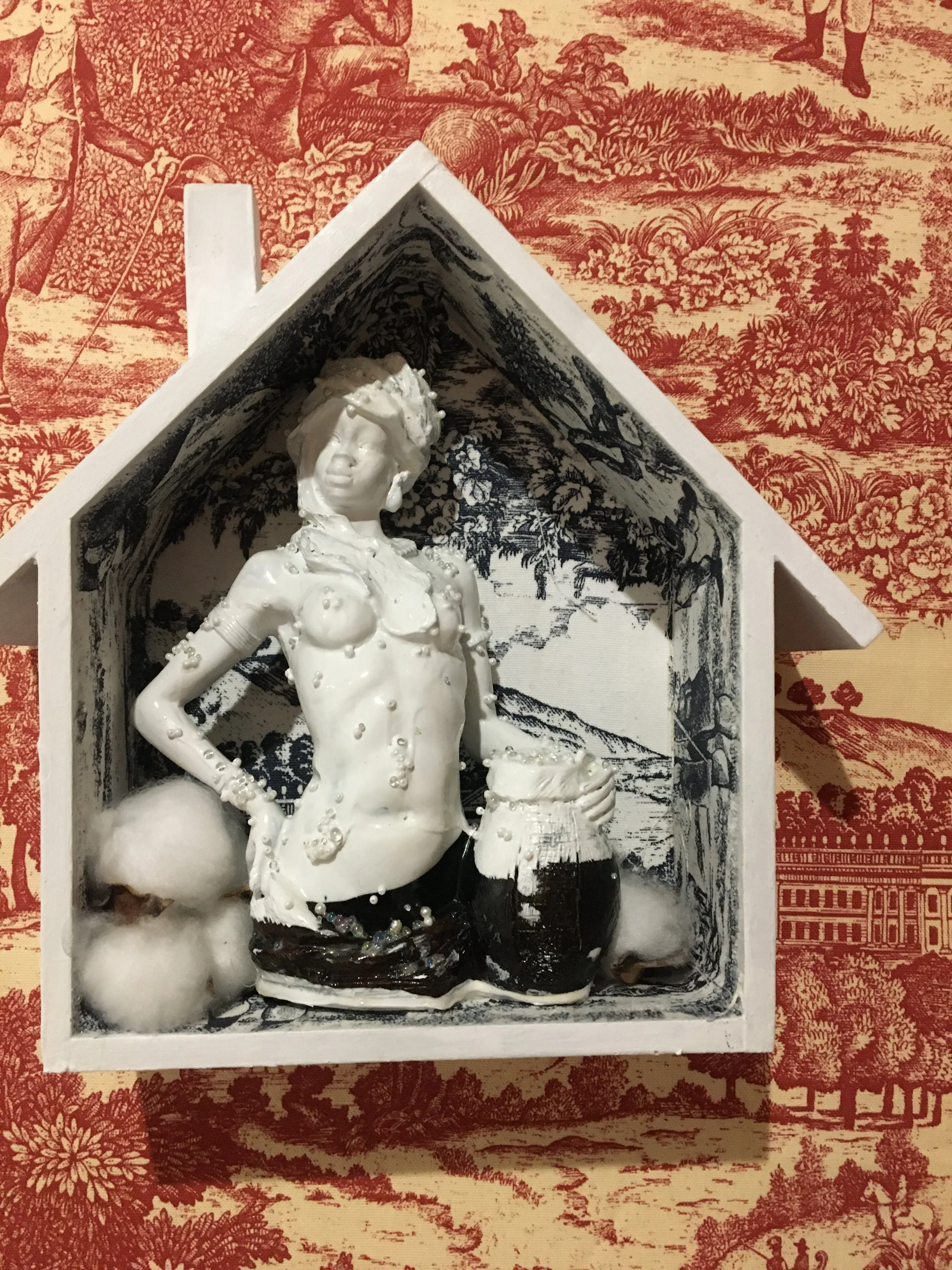 You’ve Made This House Your Home is an ever-evolving installation comprised of ornamental mixed-media works that unearth the silenced, concealed, and erased narratives of the Black diaspora, my personal experiences as a biracial Black woman, and the foundational systems of oppression that continue to influence contemporary culture. This project delves into themes surrounding respectability politics, their interconnectedness with White Supremacy and colonization, and the dual role they play in both advancing and dismantling communities. Inspired by W.E.B. Du Bois' essay "The Talented Tenth" and rooted in hidden American histories such as The Pearl Incident, the project draws from scholarly insights provided by figures like E. Franklin Frazier, Sabrina Strings, and the literary influence of Margot Jefferson.