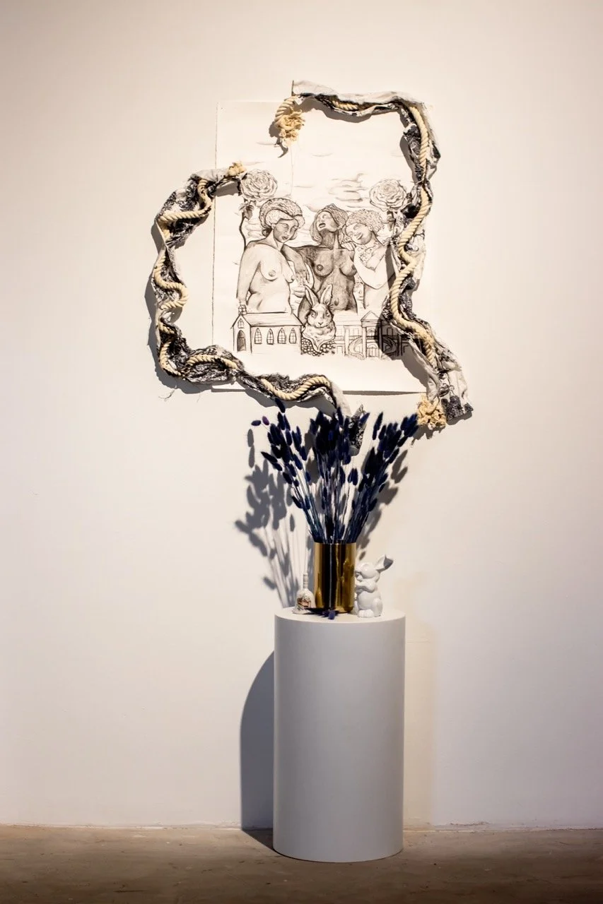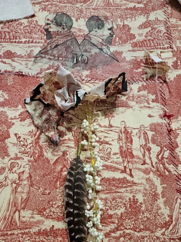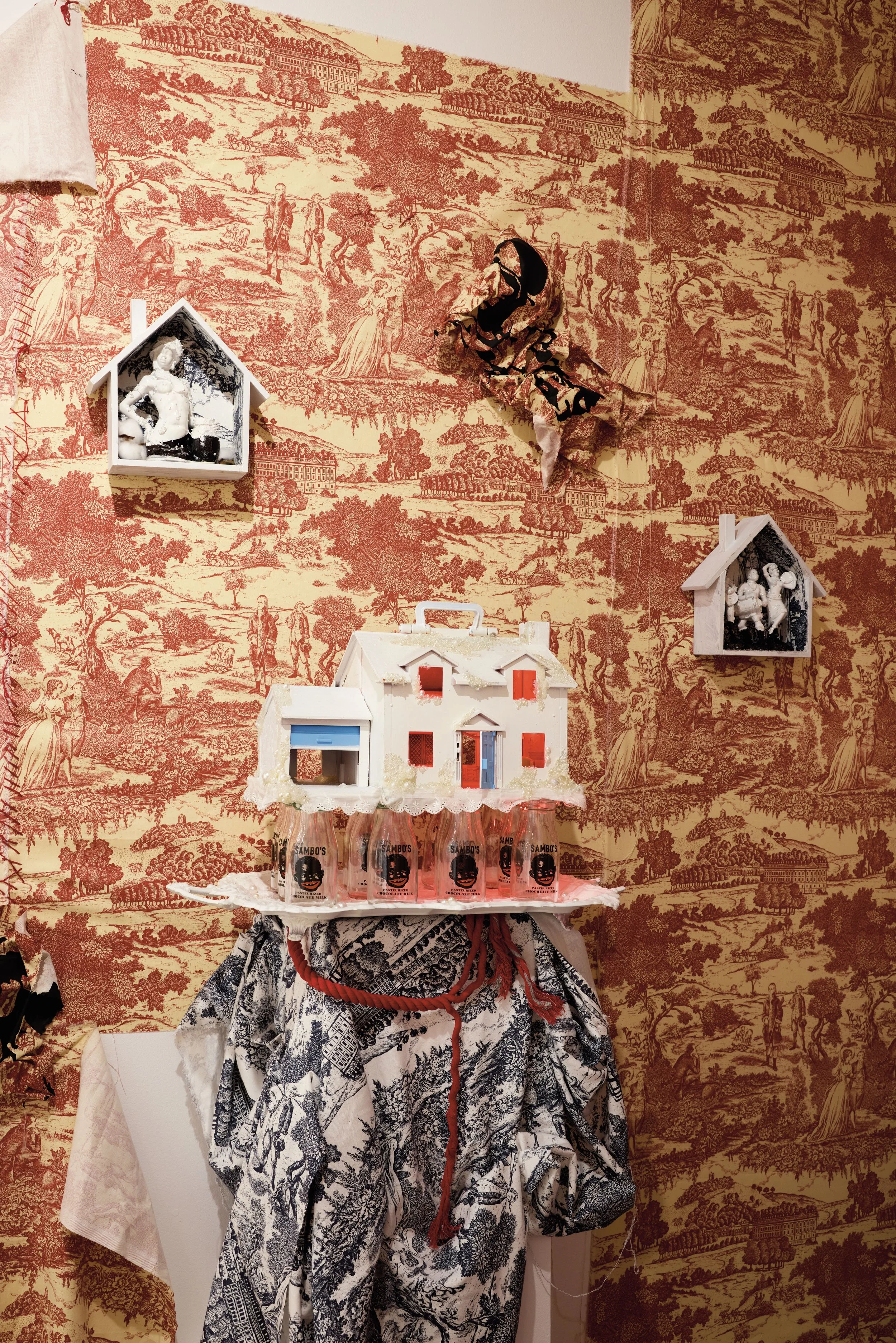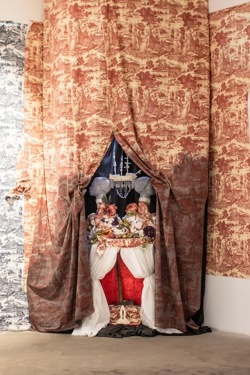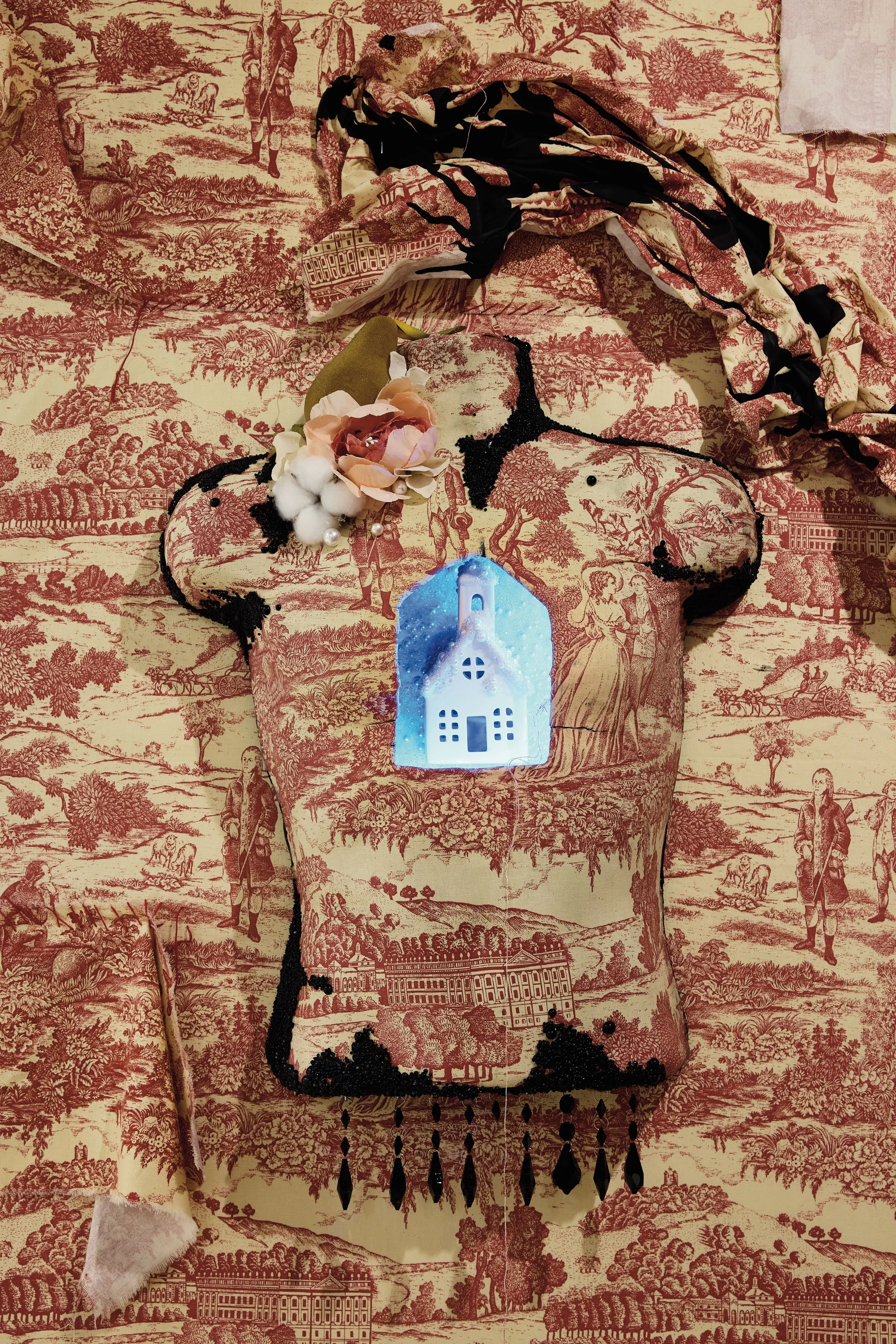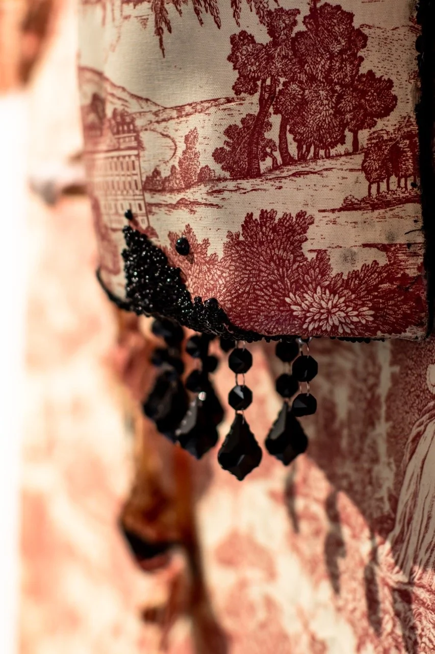 You’ve Made This House Your Home is an ever-evolving installation comprised of ornamental mixed-media works that unearth the silenced, concealed, and erased narratives of the Black diaspora, my personal experiences as a biracial Black woman, and the foundational systems of oppression that continue to influence contemporary culture. This project delves into themes surrounding respectability politics, their interconnectedness with White Supremacy and colonization, and the dual role they play in both advancing and dismantling communities. Inspired by W.E.B. Du Bois' essay "The Talented Tenth" and rooted in hidden American histories such as The Pearl Incident, the project draws from scholarly insights provided by figures like E. Franklin Frazier, Sabrina Strings, and the literary influence of Margot Jefferson.
