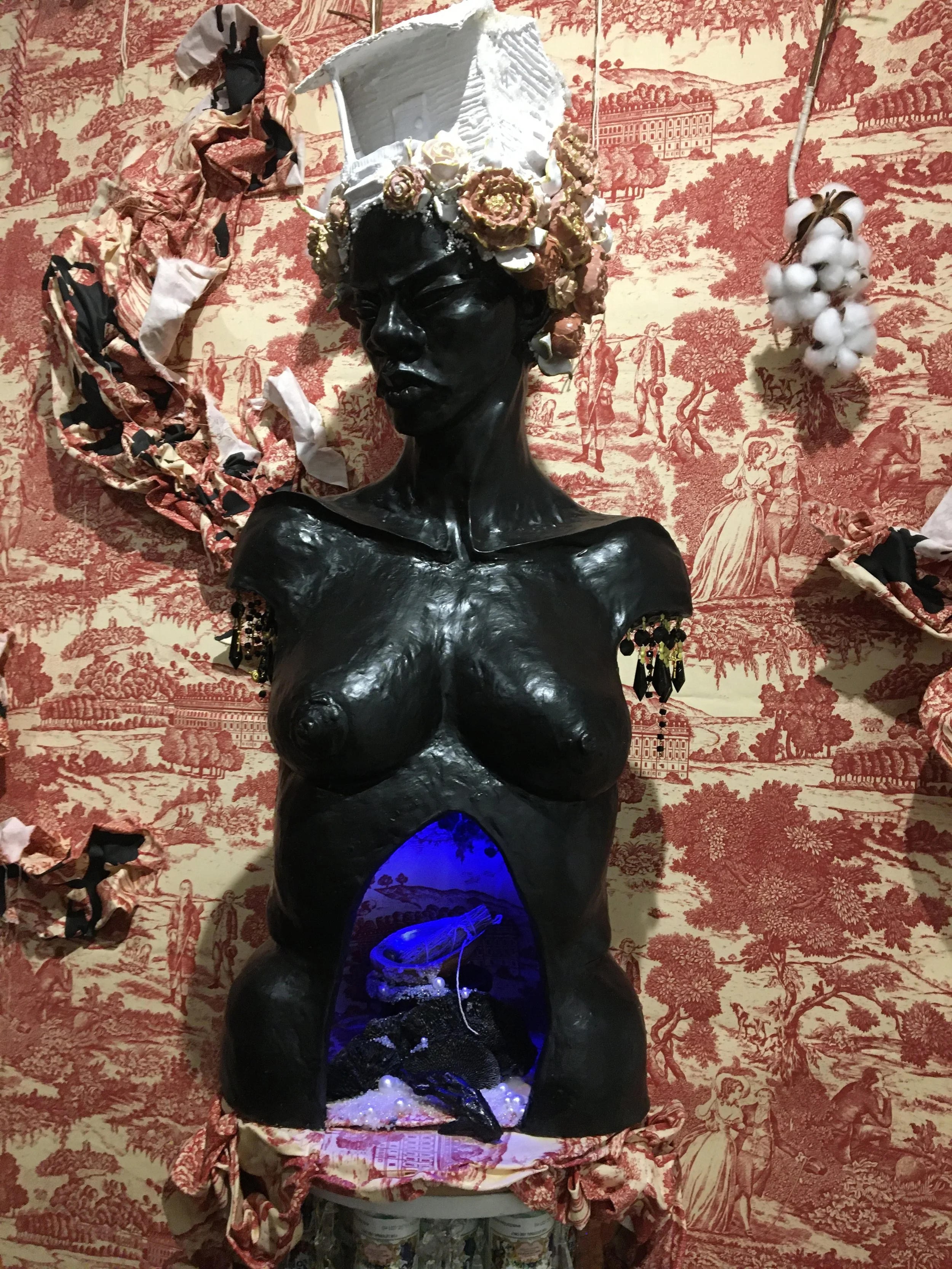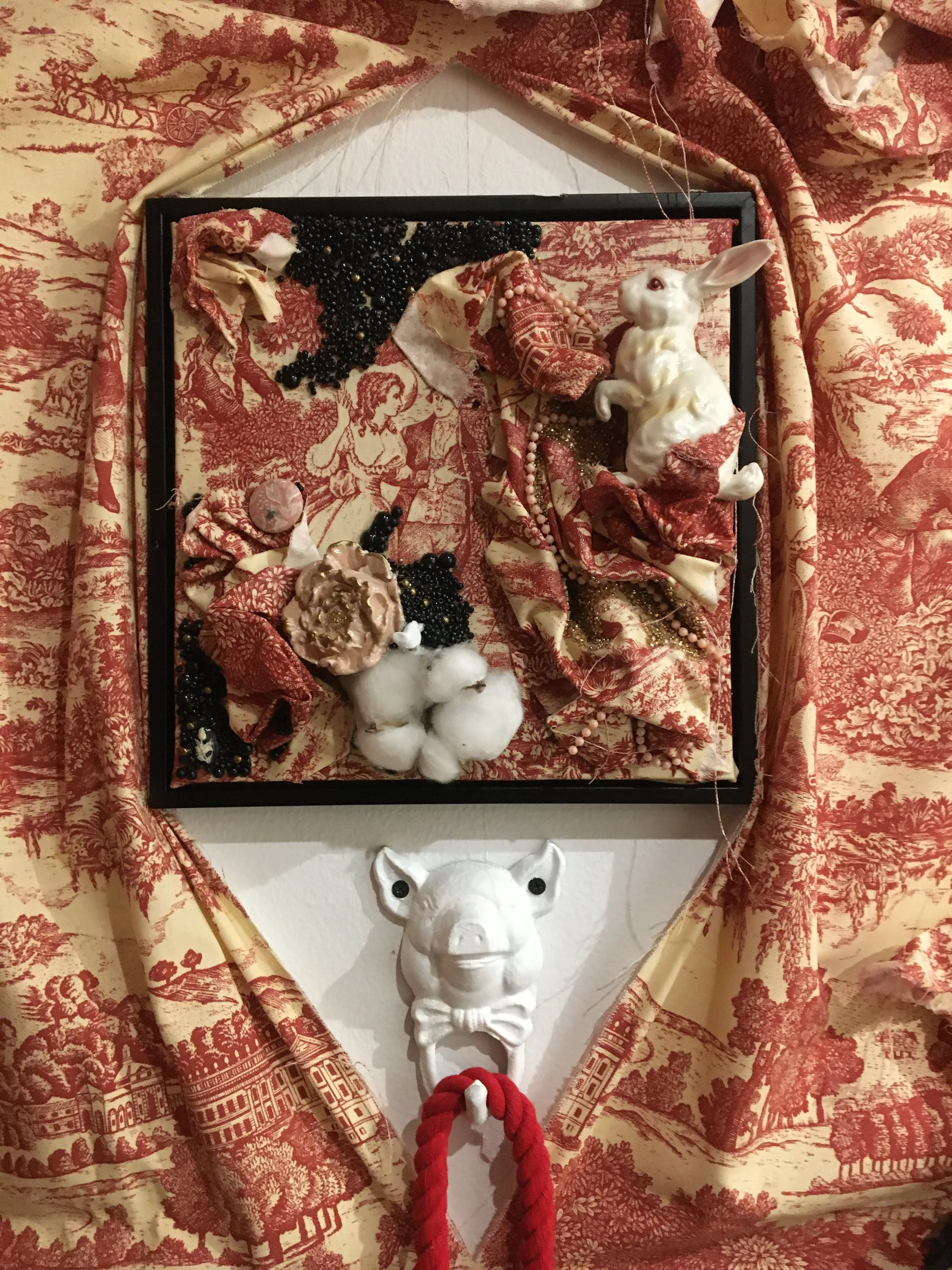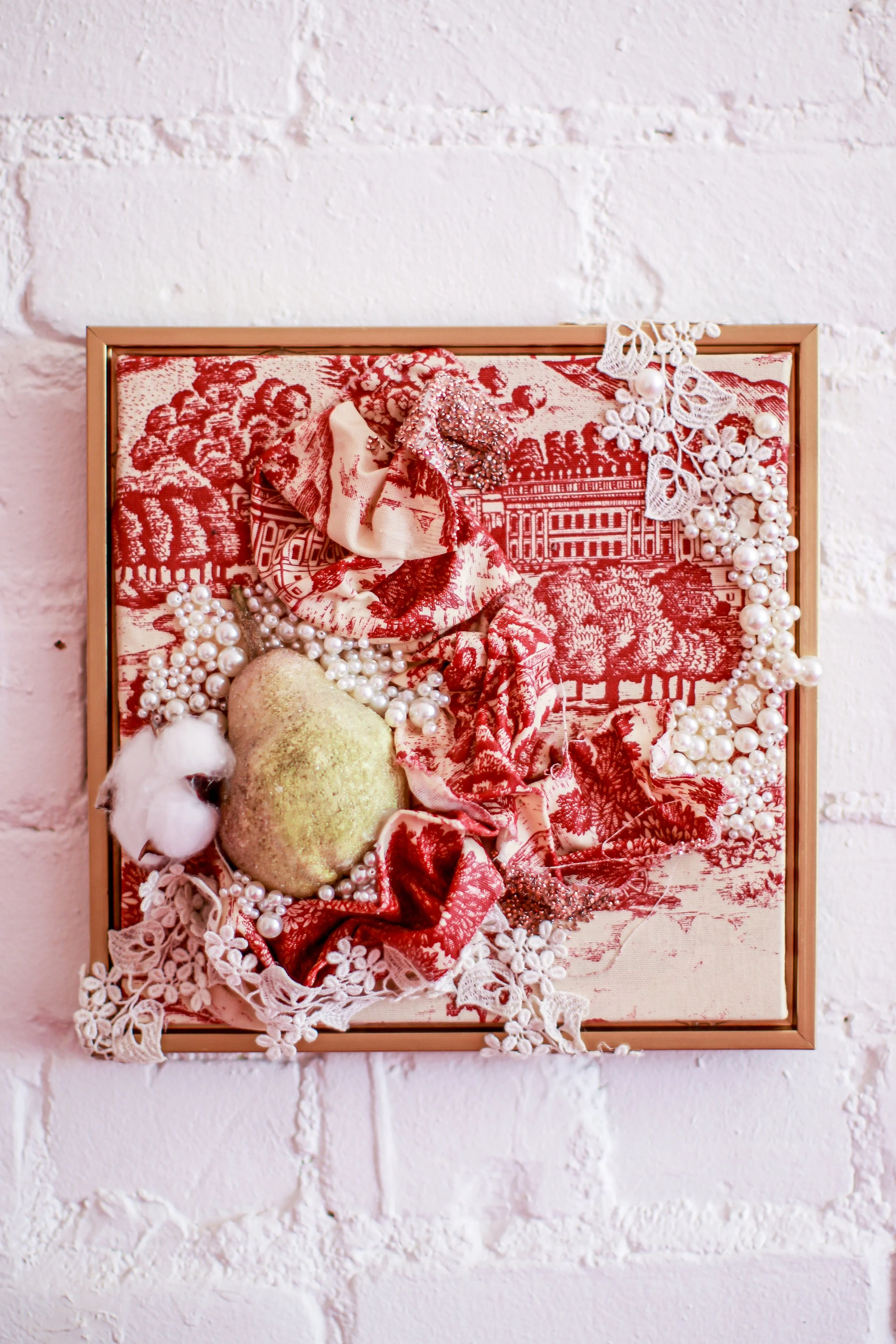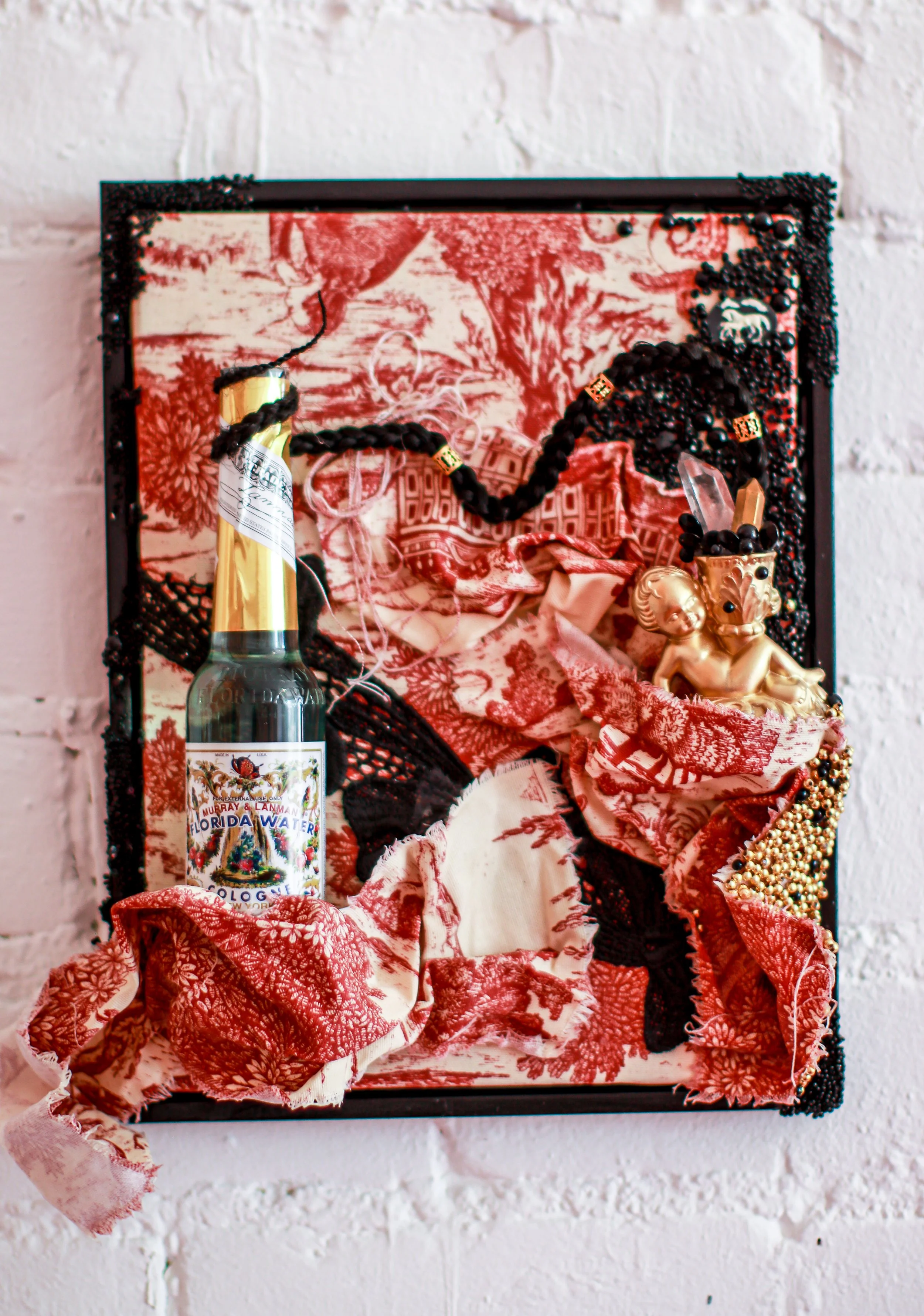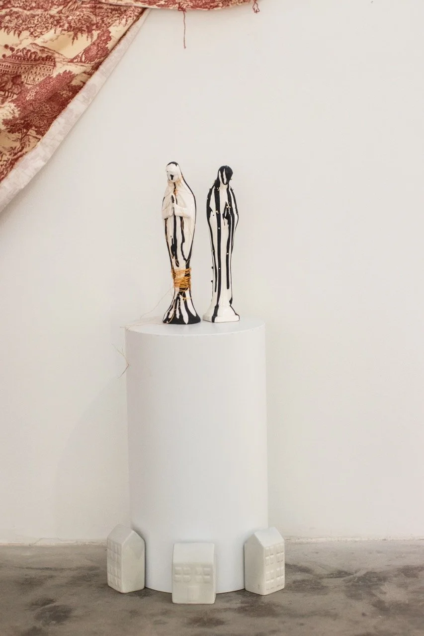 You’ve Made This House Your Home is an ever-evolving installation comprised of ornamental mixed-media works that unearth the silenced, concealed, and erased narratives of the Black diaspora, my personal experiences as a biracial Black woman, and the foundational systems of oppression that continue to influence contemporary culture. This project delves into themes surrounding respectability politics, their interconnectedness with White Supremacy and colonization, and the dual role they play in both advancing and dismantling communities. Inspired by W.E.B. Du Bois' essay "The Talented Tenth" and rooted in hidden American histories such as The Pearl Incident, the project draws from scholarly insights provided by figures like E. Franklin Frazier, Sabrina Strings, and the literary influence of Margot Jefferson.