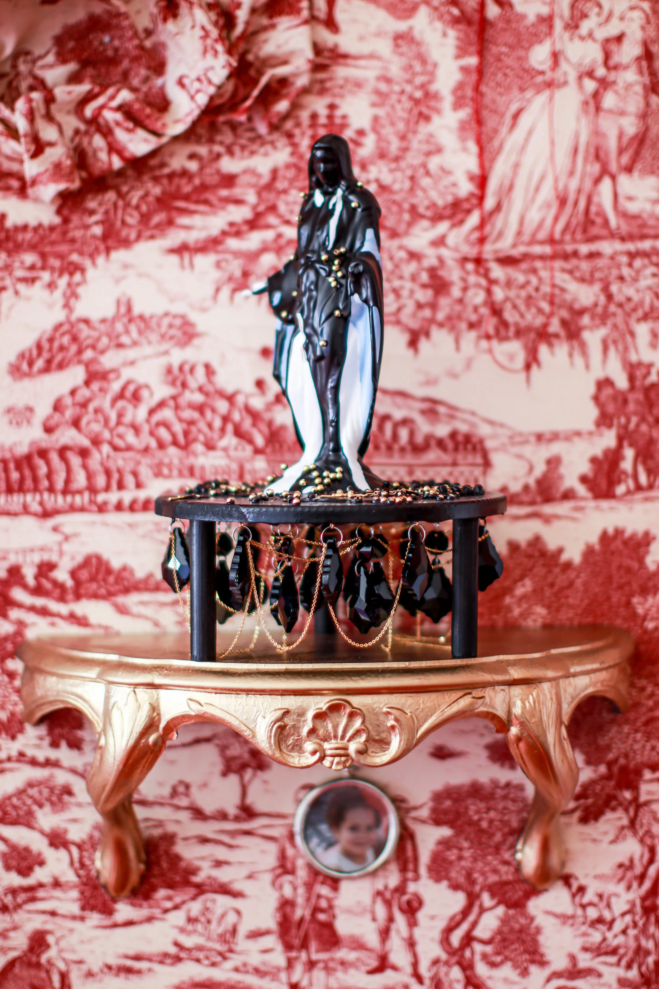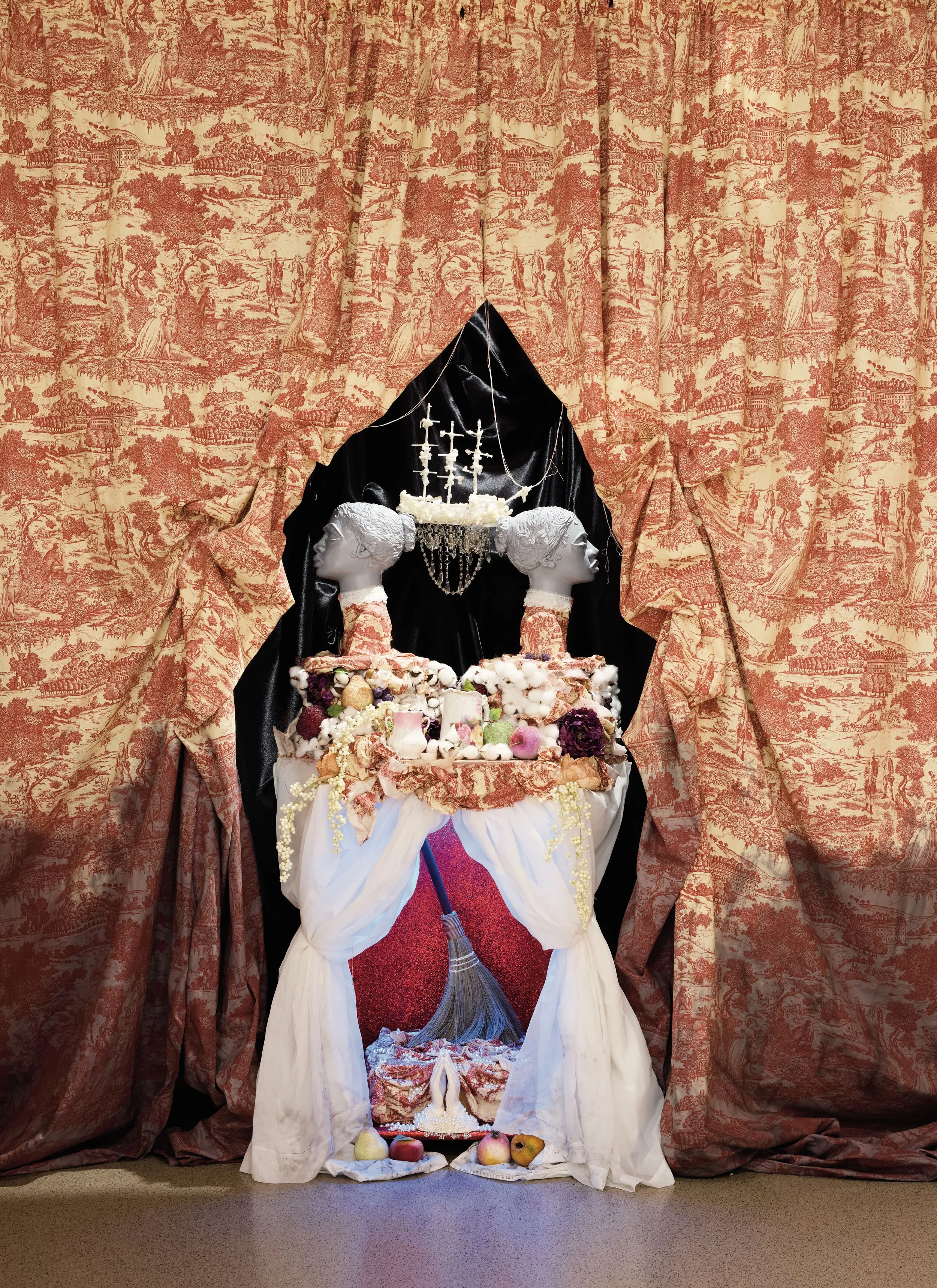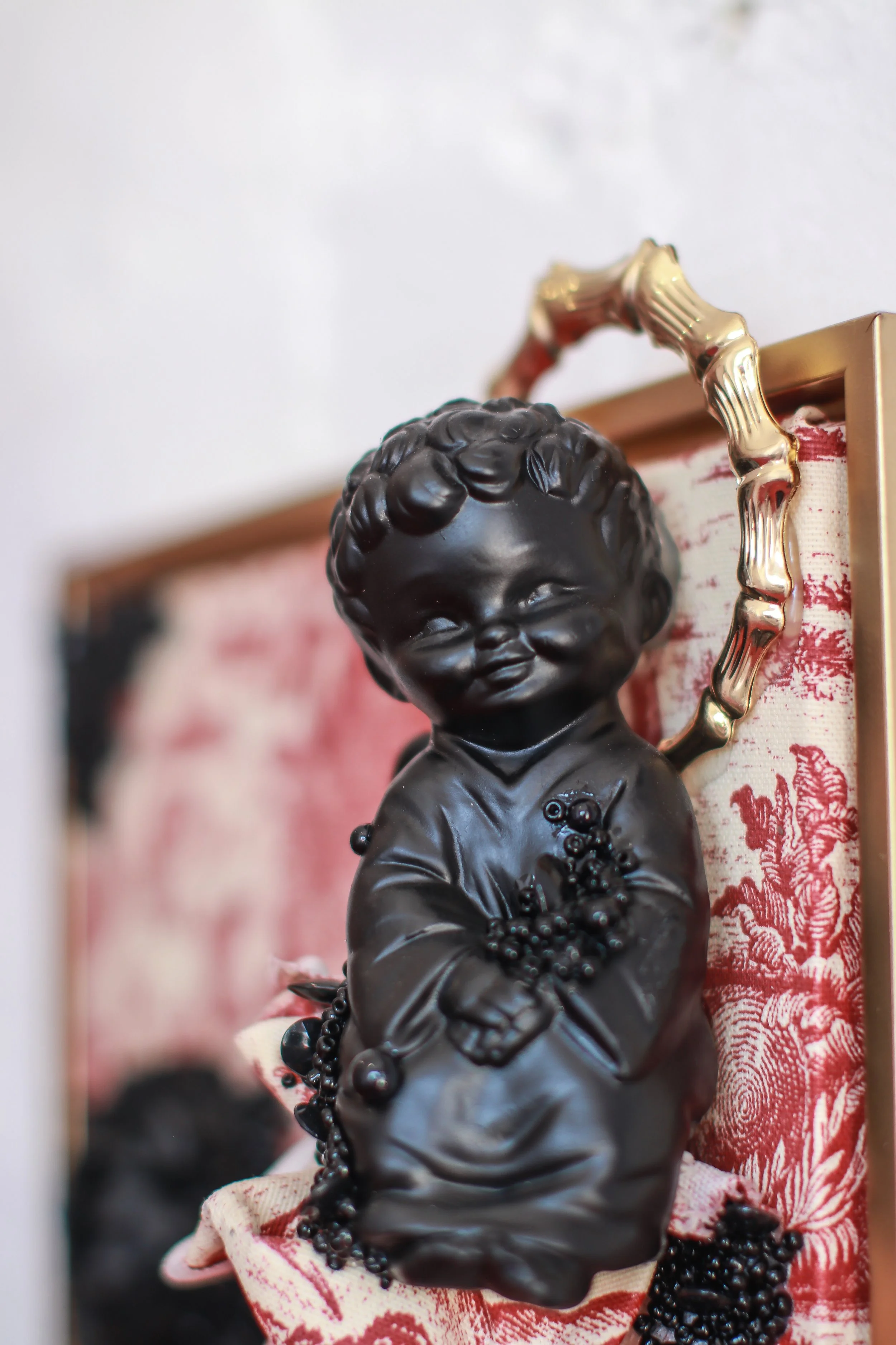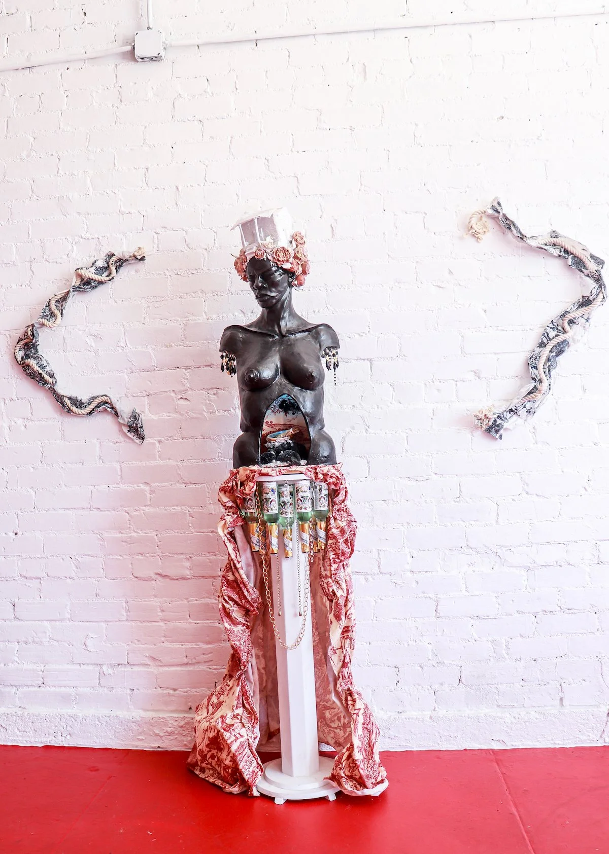 In this project, I employ the metaphor of a house to represent the social systems and constructs in which we live, often complacently without questioning their foundations. Drawing from the real estate term "bad bones," which describes a house's foundation and its ability to withstand the test of time, I extend this term to characterize the societal structures we inherit and perpetuate generationally or those we adopt to contextualize our present lives. Ornamental assemblages throughout the installation create layers of codes and constructs specifically felt within the Black community.